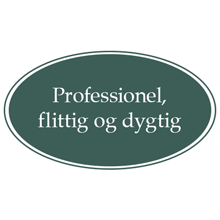Service ud over al forventning. Hjælpsomme, venlige og professionelle. Der er simpelthen ingen smalle steder, og salæret er som hos de store kæder, hvor man ikke har den samme, meget personlige kontakt.
